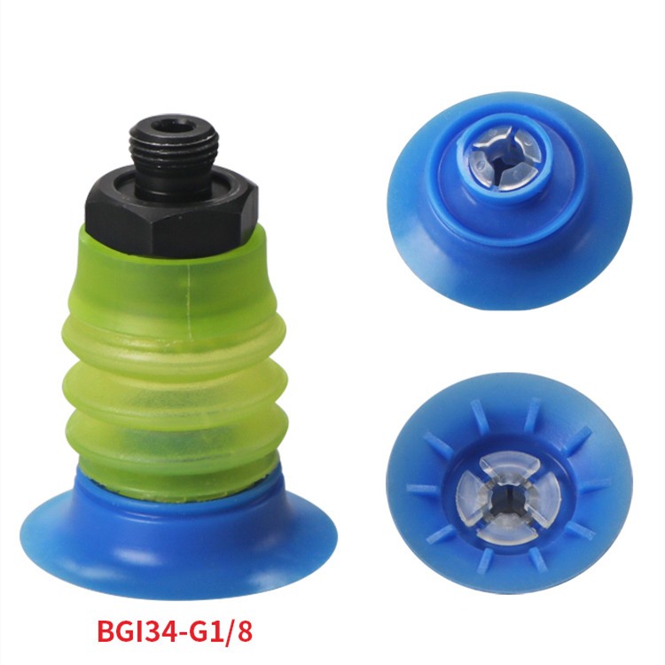 Good sealing for gripping soft packaging bags or soft workpieces. Can effectively compensate the height difference of irregular packaging bags. Replaceable lip seal of the suction cup.